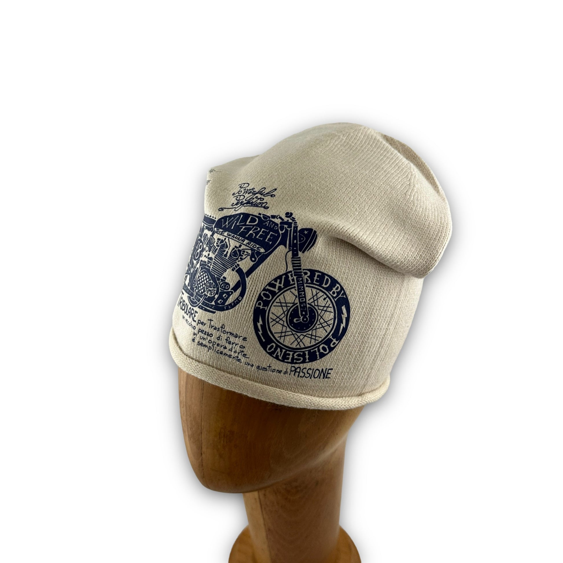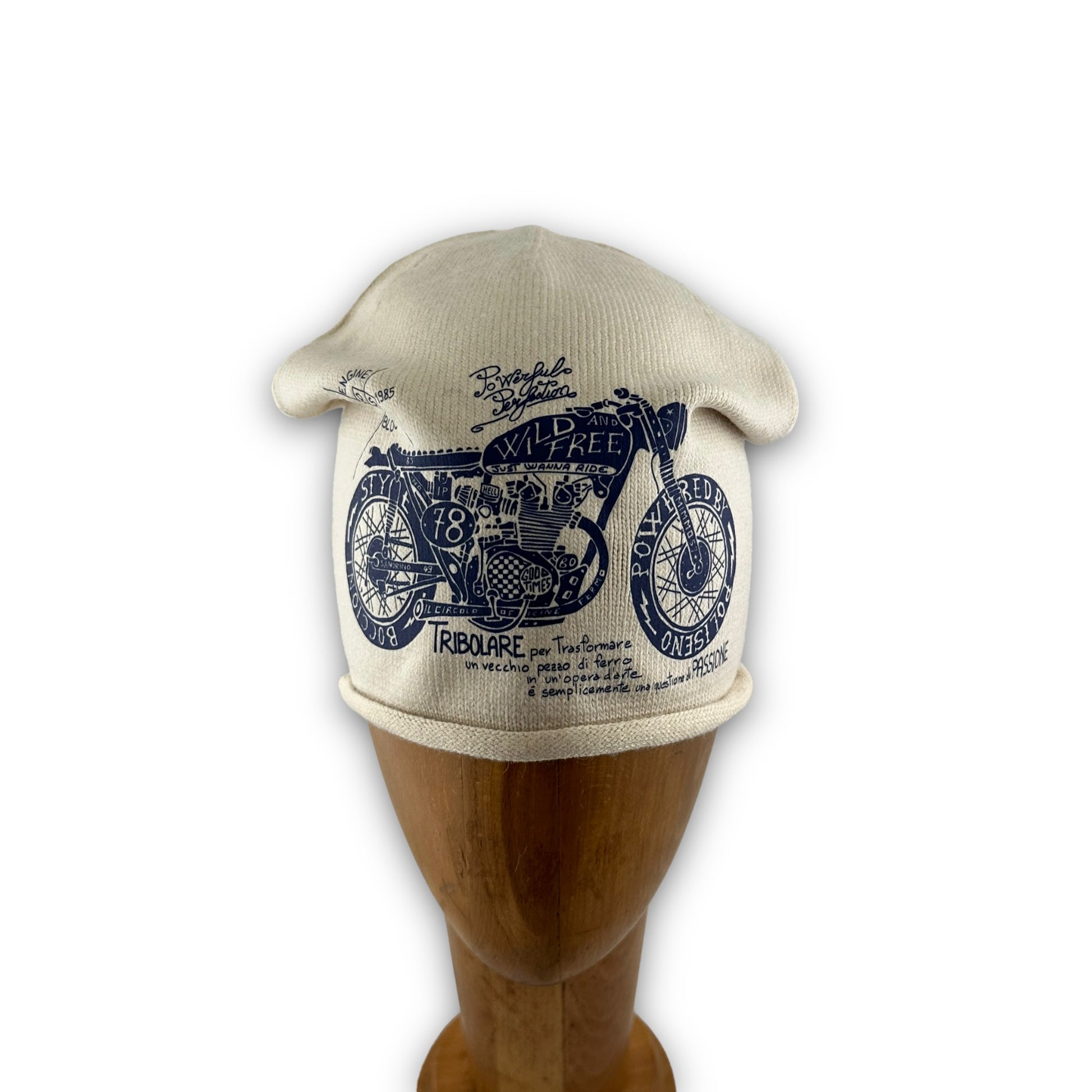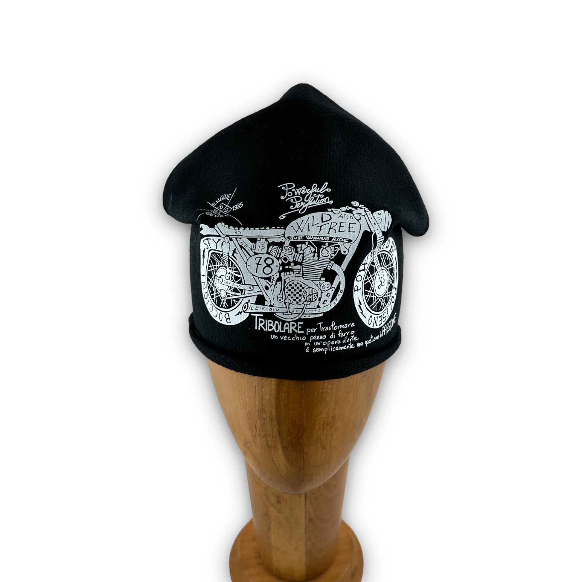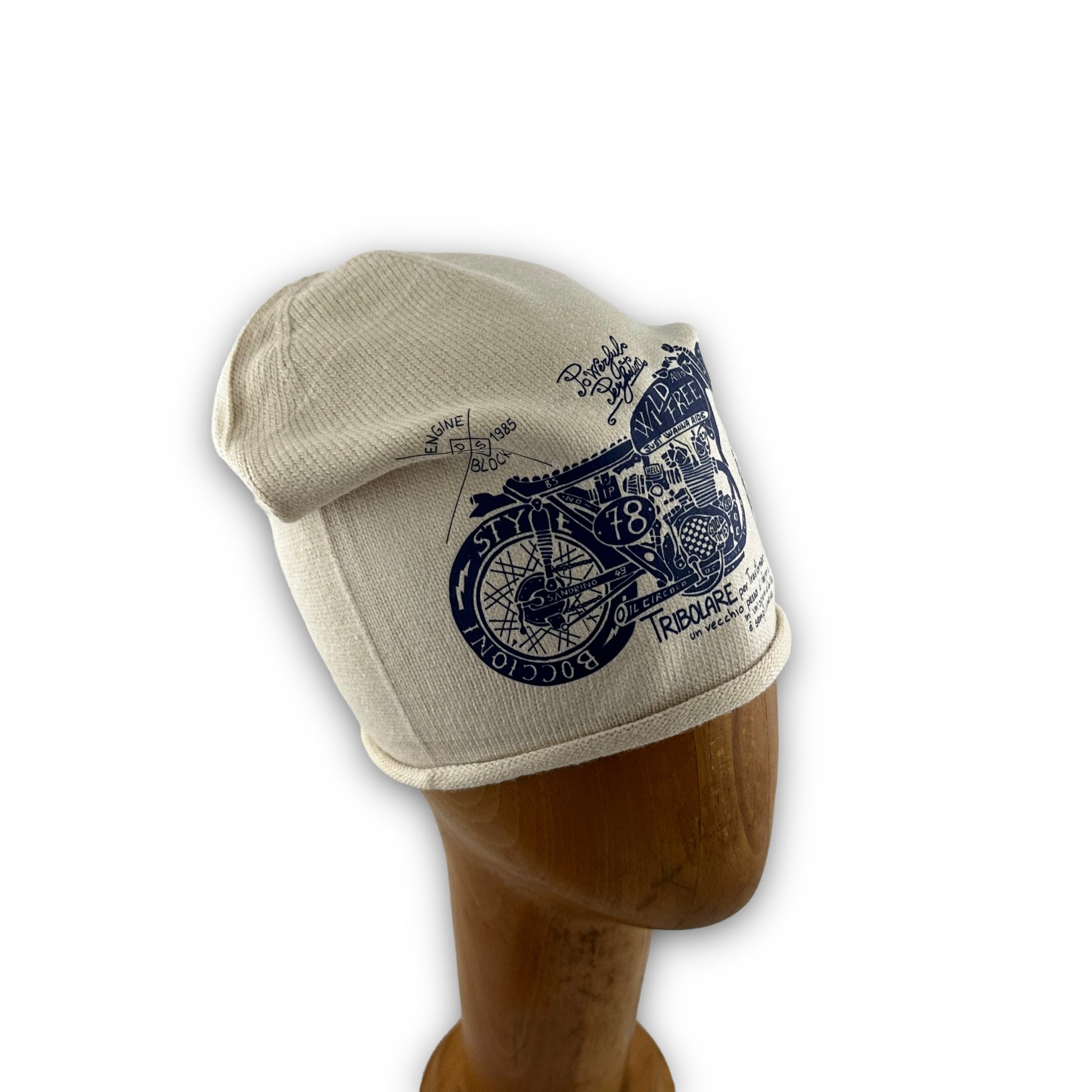 Cappello con la prima stampa disegnata interamente dal nostro super architetto.